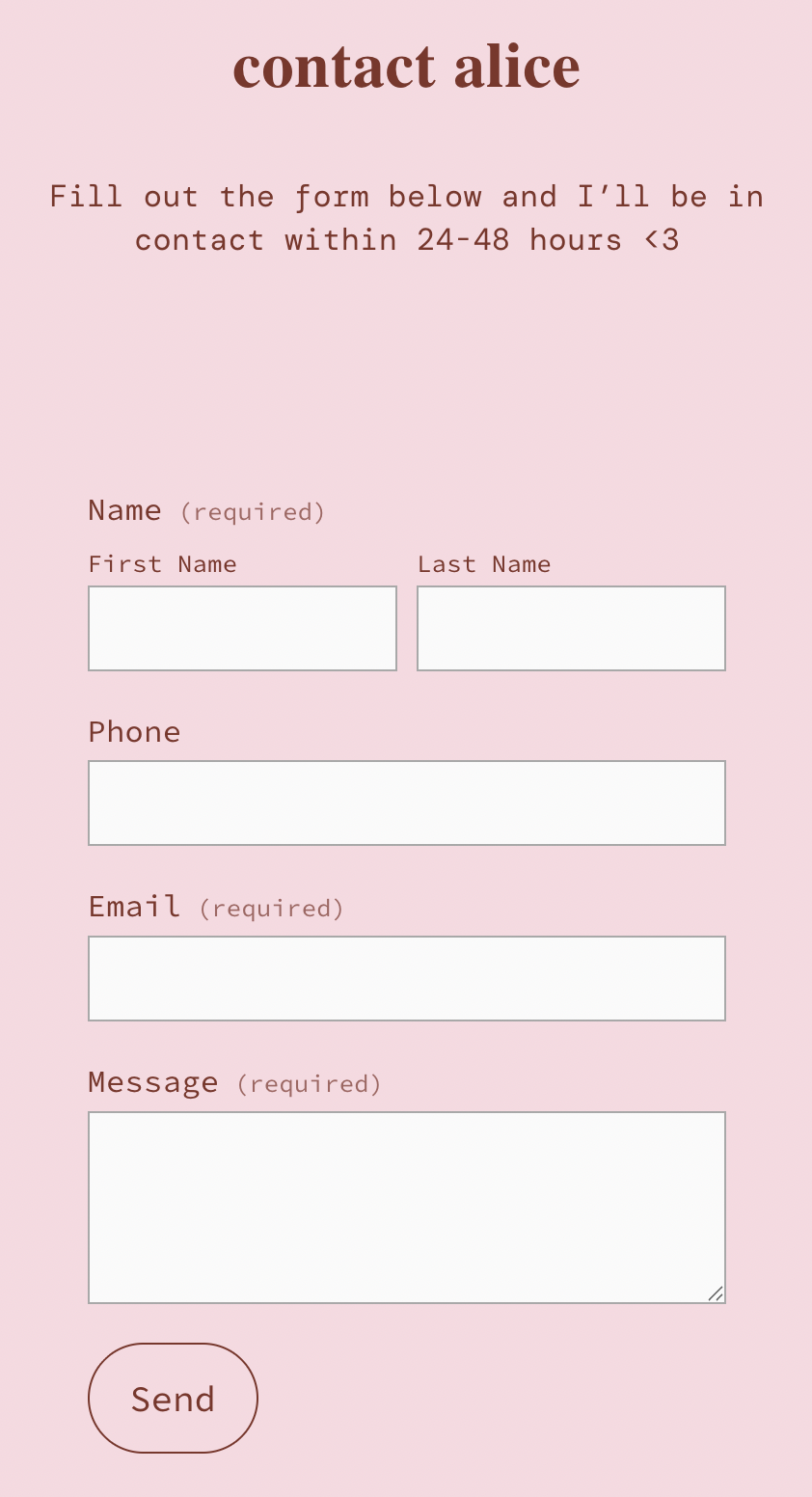 Created a custom website using CSS for my Squarespace Design Class. The website is based on Alice, a local tattoo artist.